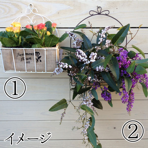 フラワースタンド:ワイヤーバスケット(布付き)S*【種類を選べます】 壁掛けタイプとハンギングタイプがございます☆